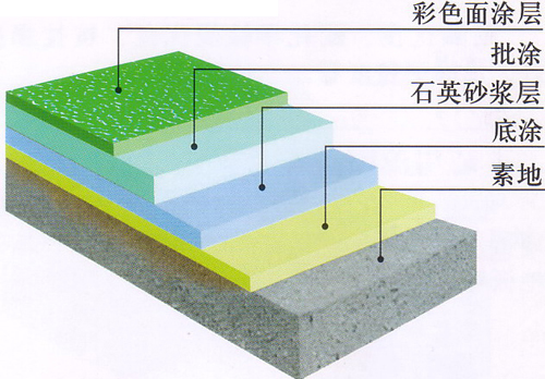 ⑷ 石英砂浆层:将树脂加入1—3倍的石英砂,搅拌均匀,按要求厚度涂装在地涂上,达到平整,增强地板的机械性能和附着力。