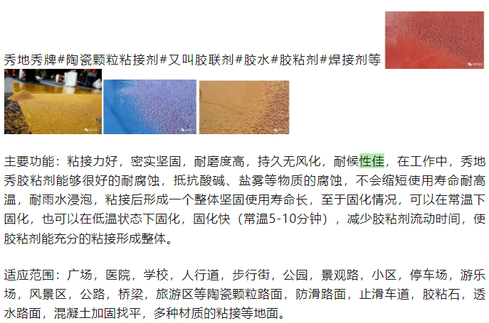 秀地秀牌#陶瓷颗粒粘接剂#又叫胶联剂#胶水#胶粘剂#焊接剂等 作者:上海秀地 发布时间: 2023/1/8 阅读: 250 次