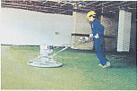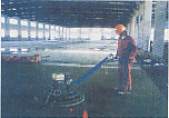 耐磨地坪施工工艺 1• 除去浮浆; 使用加装圆盘的机械慢速度均匀地去除混凝土表面的浮浆层。 2• 第一次散布耐磨材料; 将规定用量2/3的耐磨材料均匀布在初凝阶段的混凝土表面,待材料吸收一定水分后,用专业水平尺充分刮平粉料,进行加装园盘镘磨,提浆,抹平作业。 3、第二次撒布耐磨材料; 待耐磨材料硬化到一定阶段,进行第二次撒布,将剩下的1/3耐磨材料垂直第一次撒布材料方向,均匀撒布到表面,待耐耐磨材料吸收水分后,在用园盘镘磨提奖,抹平作业,操作时应纵横交错,多次进行。 4• 精光;(收光) 待表面初凝到相当程度(因实际情况而定)将抹平机去掉磨盘,以刀片倾斜,高速抹光,纵横交错,多次进行,直到表面滑。对边角的地方要用人工进行收光加工完成。 5、养护; 耐磨地坪完工后(视天气温度情况),用水加PVC薄膜或专用养护剂,涂敷耐磨地坪表面进行养护,防止其表面水分激烈蒸发,保障耐磨地坪强度的稳定,养护时间为七天。 金钢砂硬化耐磨材料实景
